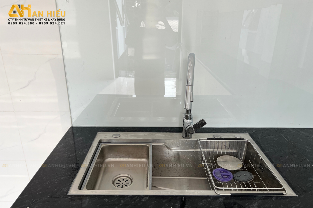 Bồn rửa chén: Với kích thước rộng; thoải mái để gia đình sử dụng, chất liệu inox 304 cao cấp có bao gồm hệ thống lọc rác.